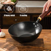 HANDCRAFTED FORGED IRON WOK - Made from high-quality iron ore using traditional techniques, this wok is forged at high temperatures to remove impurities. The hand-hammered finish enhances durability, making it resistant to scratches and corrosion, while ensuring no heavy metals leach into your food.